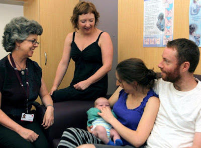 | Lisa Amir (left), Miranda Buck (centre) and new family at Royal Women’s Hospital |