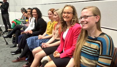 poster-presenting researchers. - The university 3MT Championship is a major event on the researcher calendar and I look forward to it every year. Especially now that I’ve been at La Trobe for a few years, I know a lot of the competitors, and have usually seen them come through the College finals. I ended up MC-ing both College finals this year so had a unique insider’s view as to how all the university finalists got in! The grand finale was excellent fun, and a buzzy atmosphere was generated by the big turn-out and audience enthusiasm. Congrats to all the prize-winners (see full list below), and best of luck to La Trobe champion Sangeeta Rathi for the Asia-Pacific Final at the University of Queensland on 30 September! I made a Storify of the livetweets from the La Trobe 3MT Championship so you can check out the action from the day.