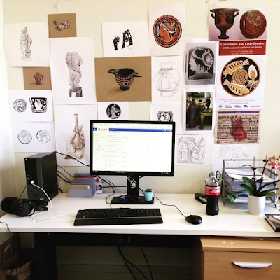 I have a desk in one of the Humanities buildings, sharing an office with two other Ancient History HDRs. It’s a nice space, there are big windows, shelves for my books, and my neighbours are the university chaplains, who are very friendly and listen to me waffling on about my research from time to time. Some nights they make communal dinners and the smell of delicious food wafts down the hall and reminds me to go and get something to eat.